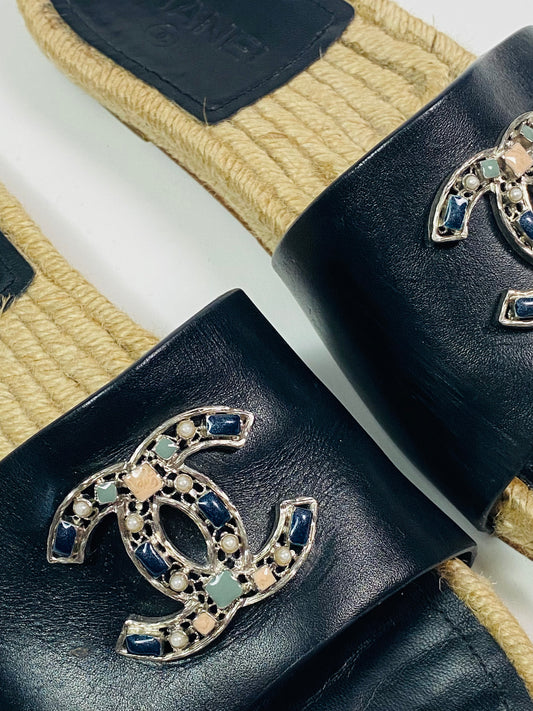 CHANEL woven slides