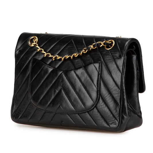 CHANEL vintage chevron lambskin double flap medium