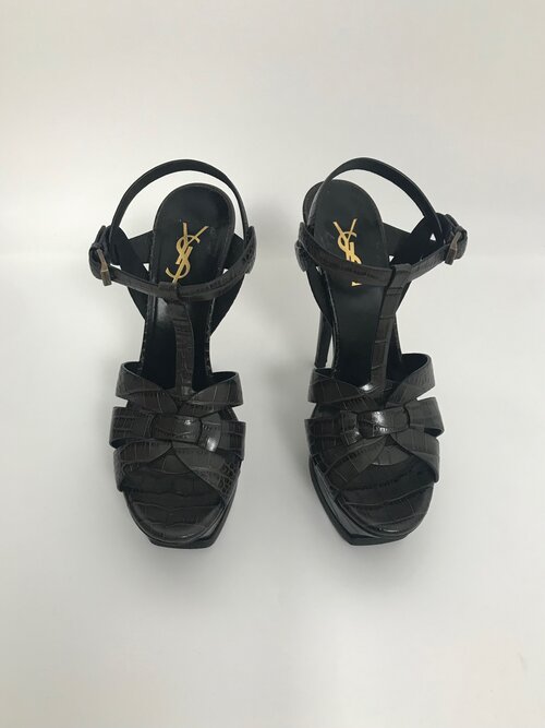 Saint Laurent Brown Croc Embossed Tribute Sandals