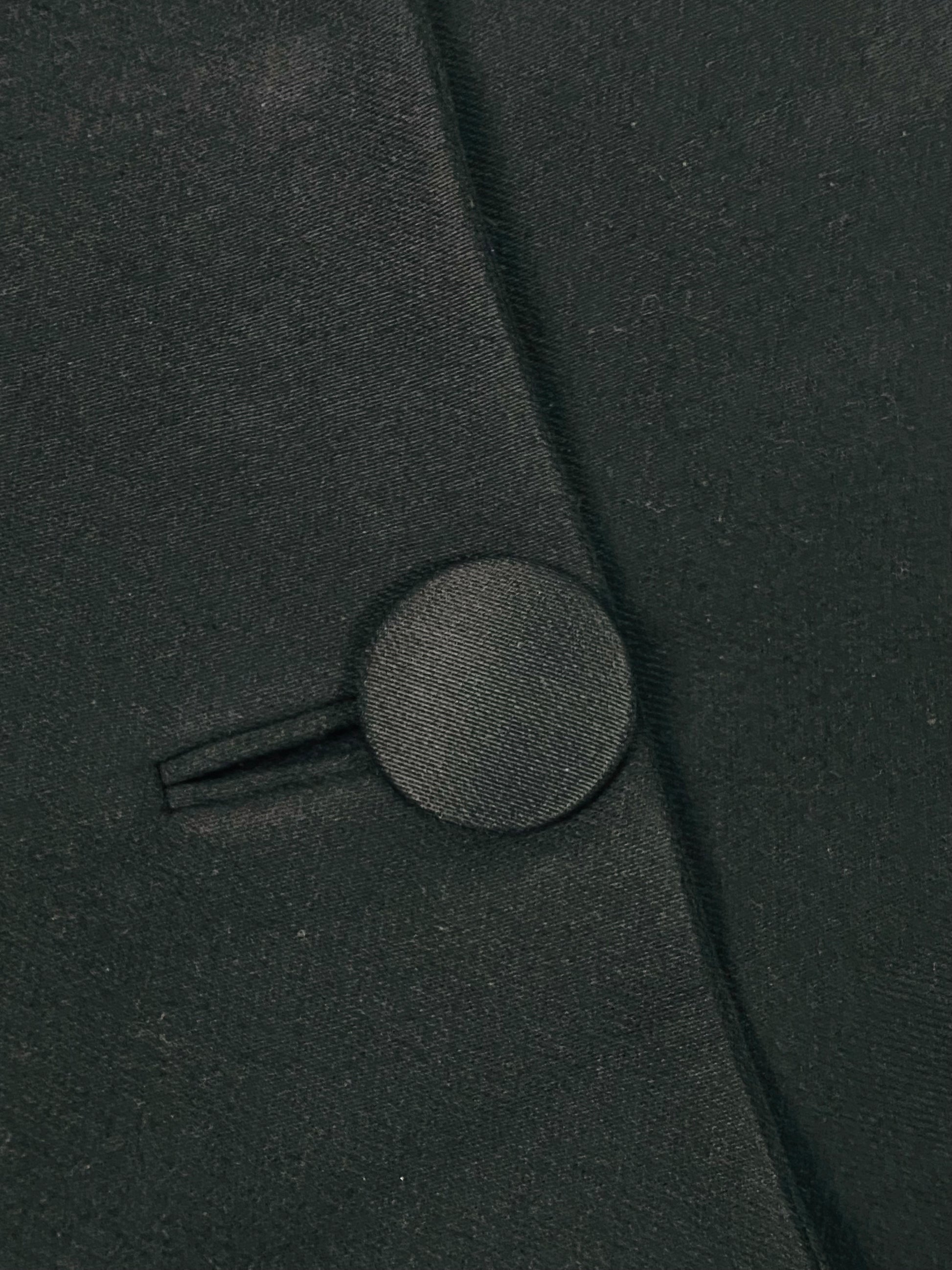 Amazing black oversized coat with a 'staple' design lining both sleeves and the back of the coat. Features one large black button at the front opening with hidden snap buttons sitting on the interior side. The perfect winter coat.