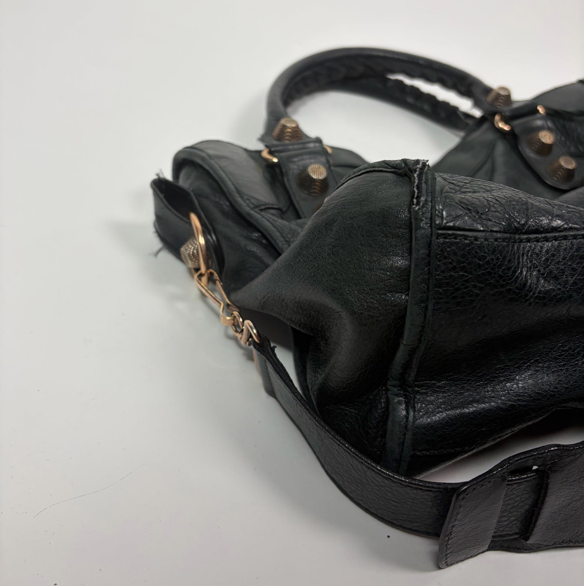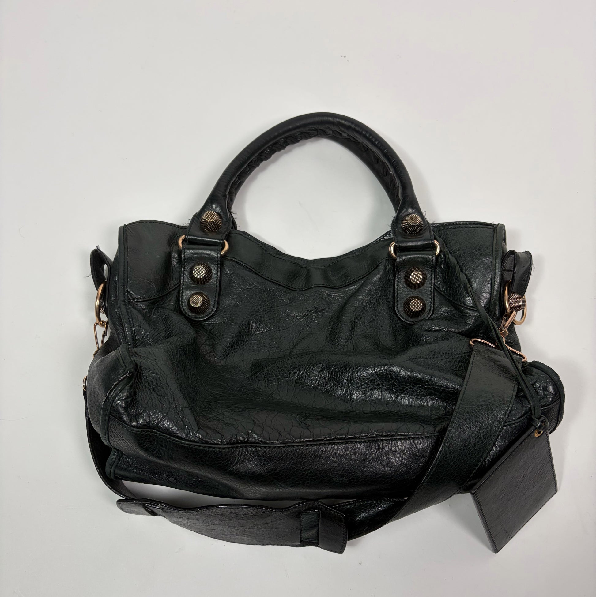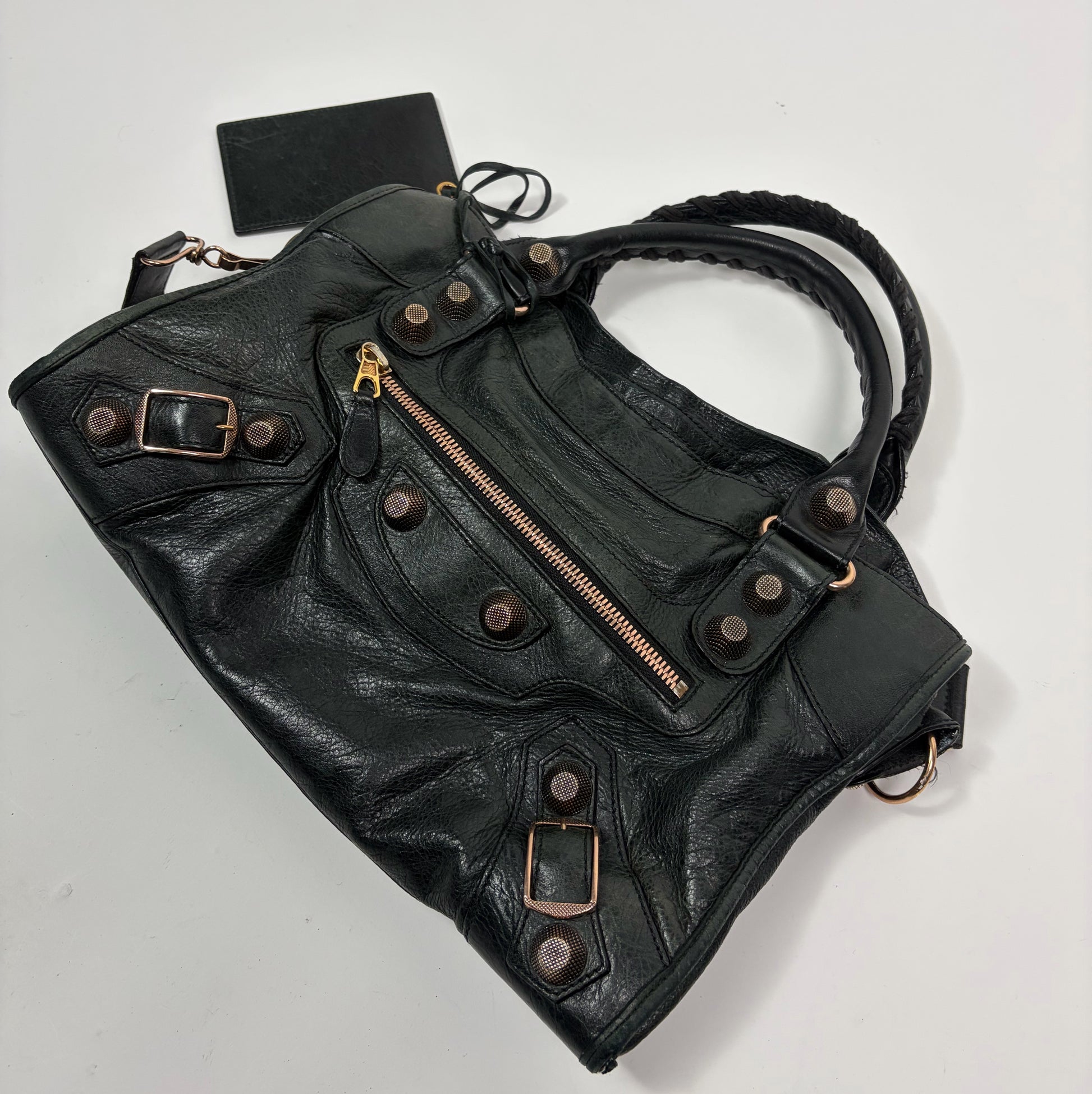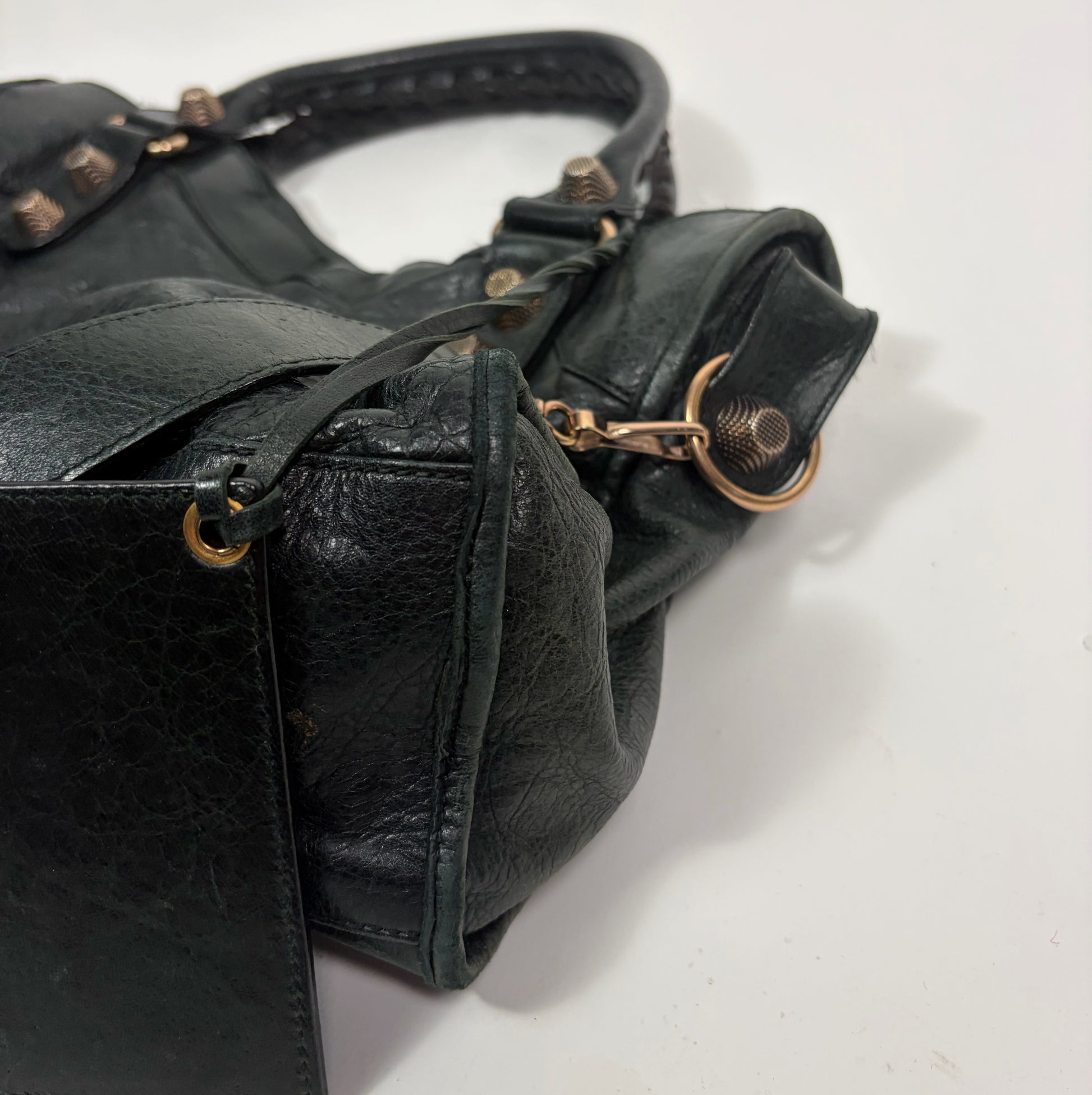 The Balenciaga City Bag in a stunning green hue combines timeless design with contemporary style. This iconic silhouette features the signature structured shape and supple leather construction that defines the collection. Perfect for elevating everyday looks or making a statement at special occasions, this versatile piece transitions seamlessly from day to night. The rich green tone adds a sophisticated touch to any wardrobe while maintaining the understated luxury Balenciaga is renowned for.