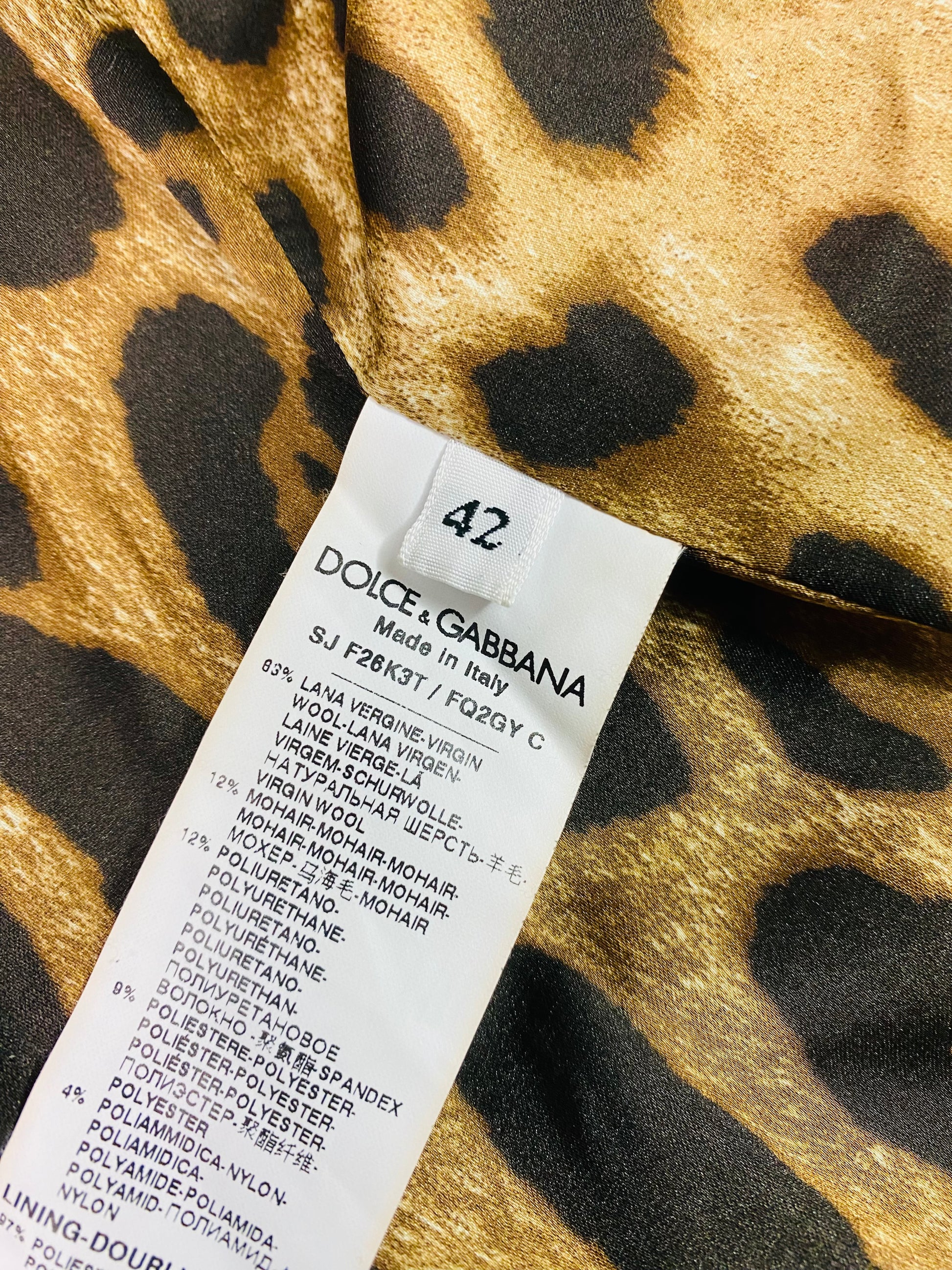 Gorgeous black and cream houndstooth long jacket with a round neckline, four pockets on the front and sleeve cuffs in leather. Features the classic 'D&G' silver hardware logo on the buttons throughout the jacket and a leopard print satin finish lining on the interior.