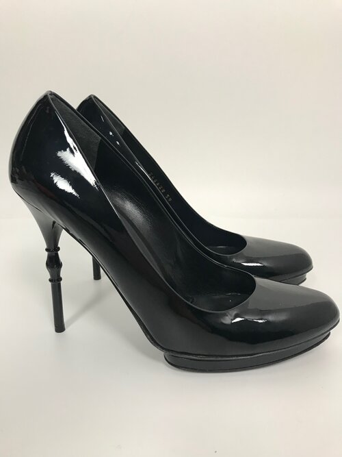 A slight platform makes these a really wearable shoe, an unusual detail is the bamboo shaped heel