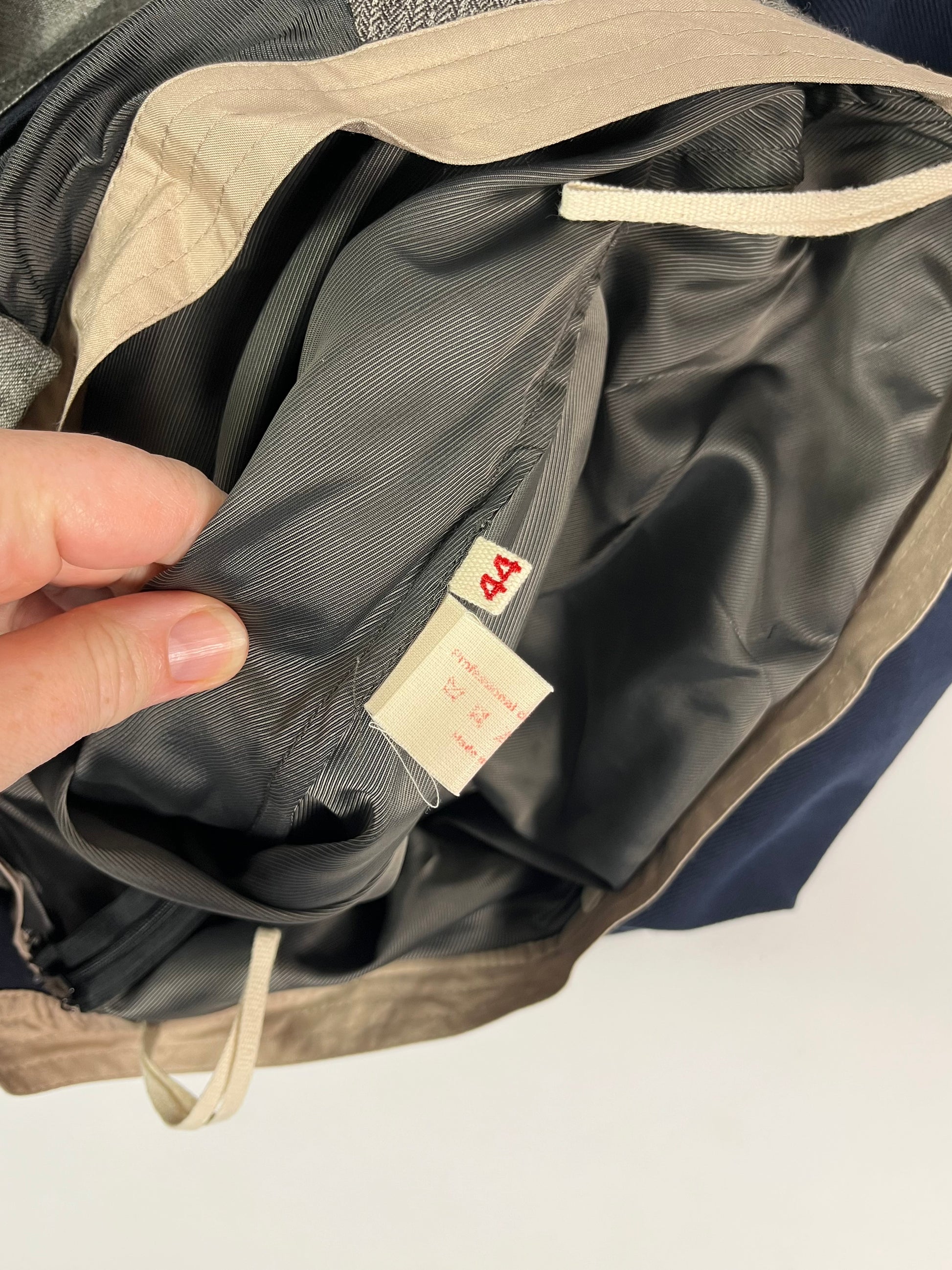 This is gorgeous a pleated flared multi fabric knee length skirt with ribbon tie waist and jewelled accent