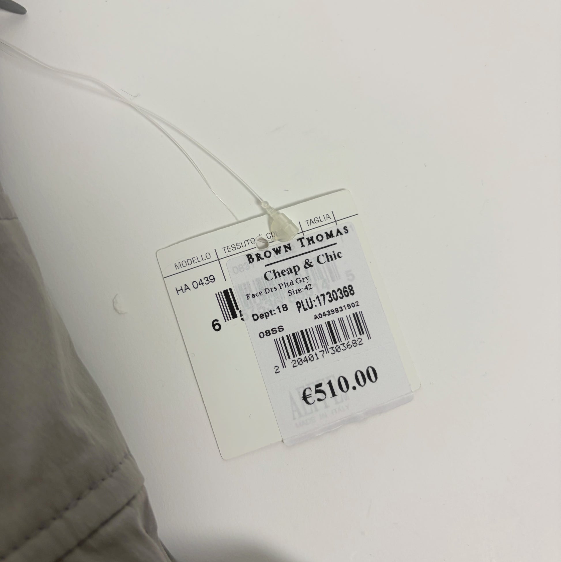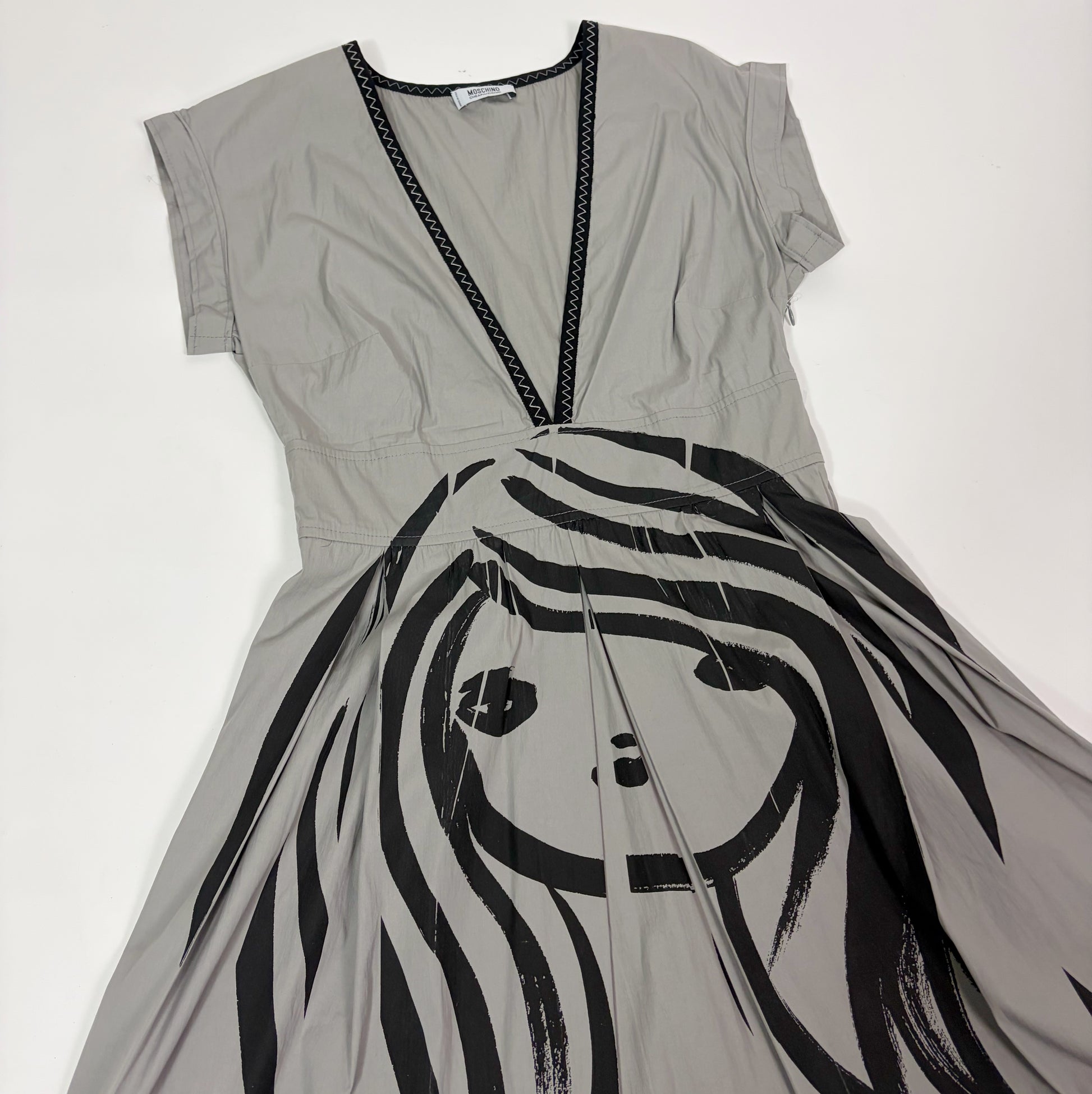 Elevate your wardrobe with this stunning Moschino dress featuring an eye-catching graphic design on the front. Crafted with meticulous attention to detail, this piece showcases the brand's signature playful aesthetic in a sophisticated grey tone. Perfect for making a statement at any occasion, the dress combines contemporary style with premium quality. Brand new with original tags, it's ready to become an instant favourite in your collection.