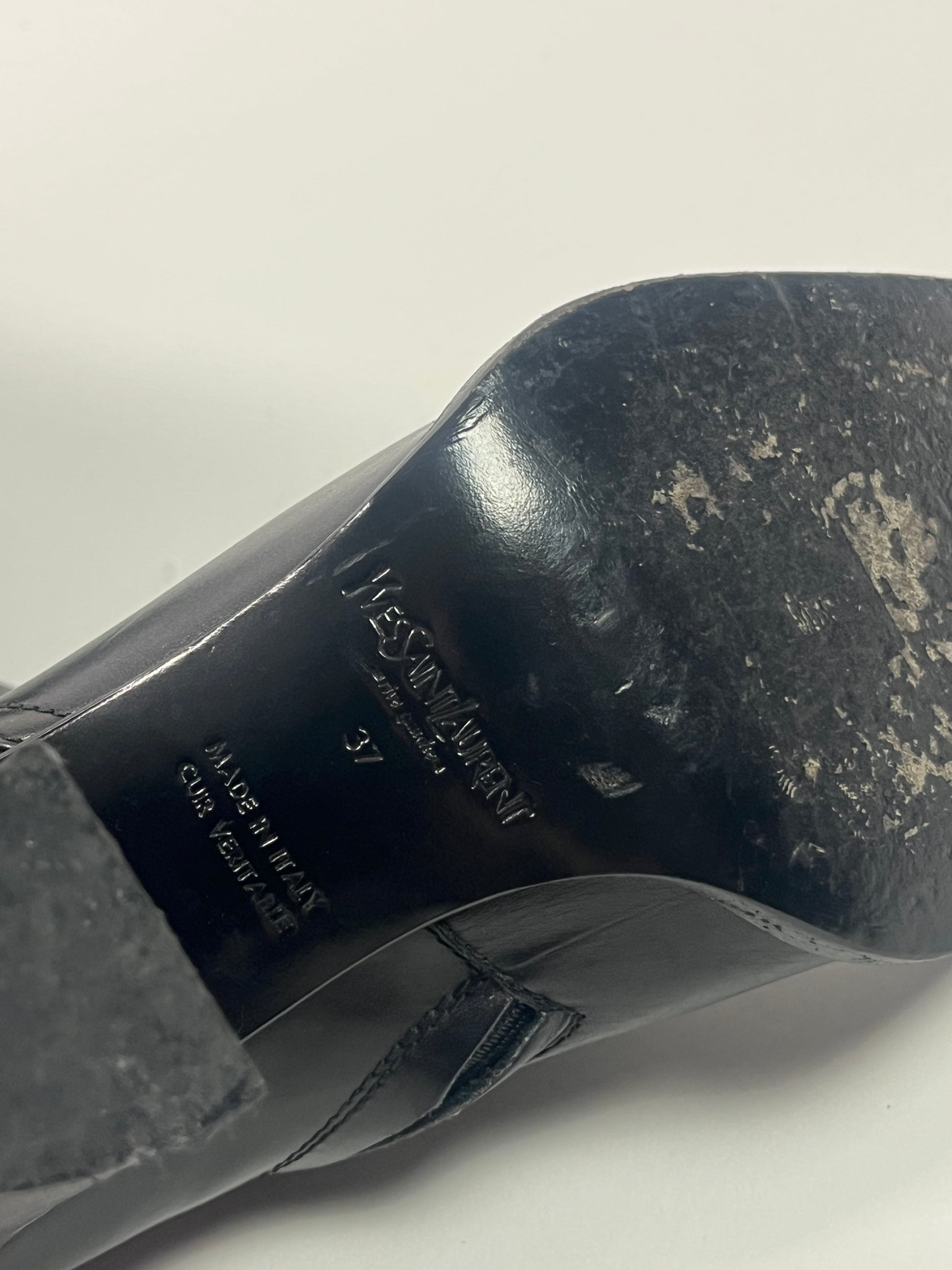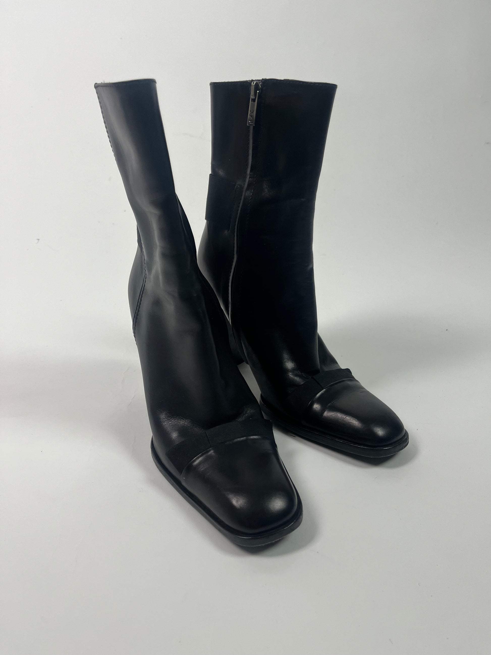 Smooth black calfskin boot with 75cm heel zip closure elongated toe cap , a very elegant choice