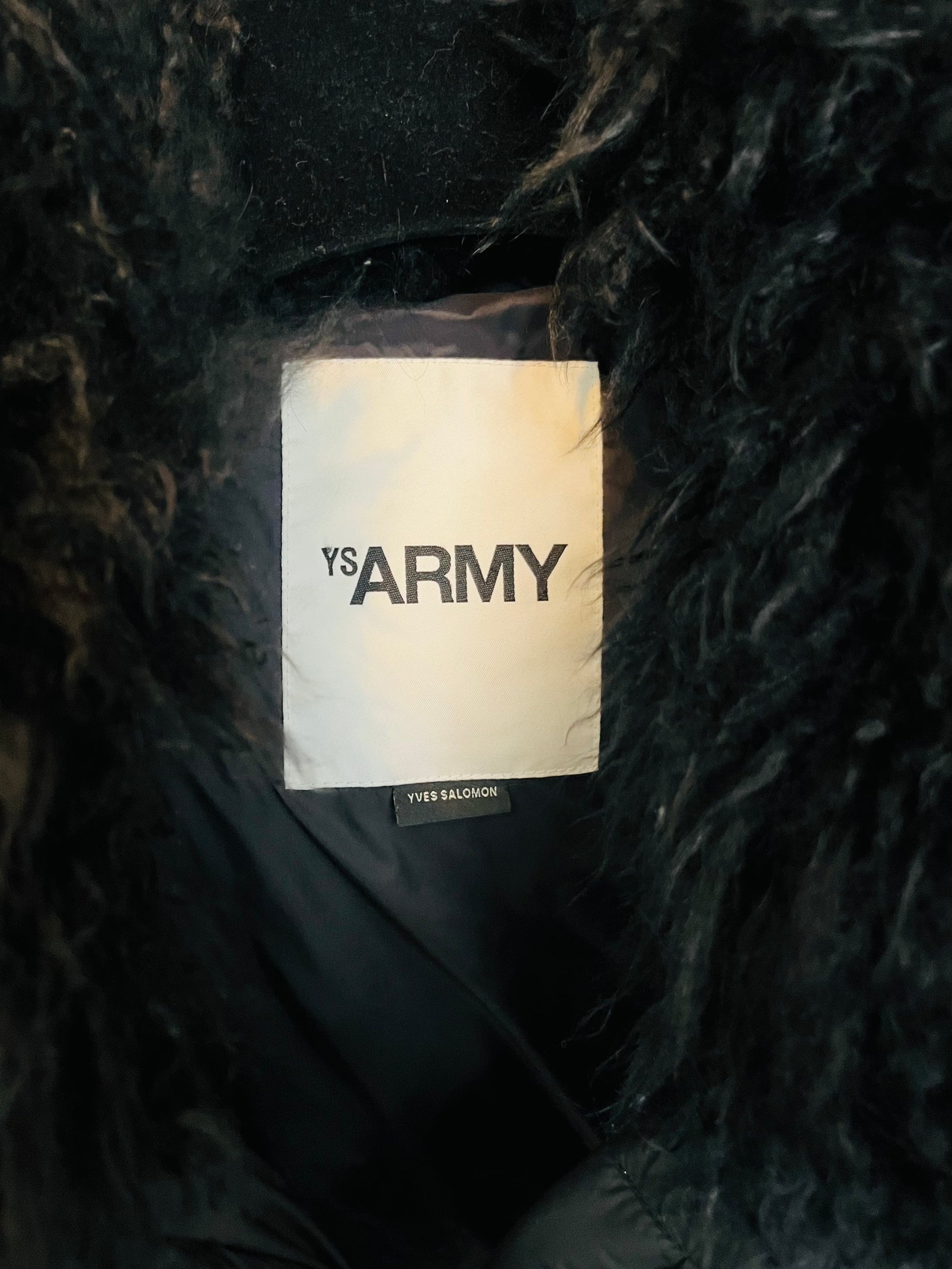 Black A line down filled puffer jacket with detachable hood and curly black lambswool collar , size 36 but an oversized fit , a perfect winter staple